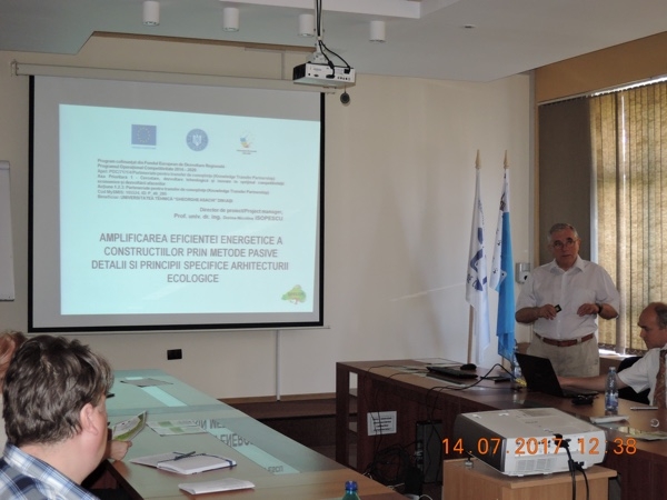 În data de 14 iulie 2017, ora 1300, la sediul Facultății de Construcții și Instalații, corp R-parter, sala 0.1, Iași, Str. Prof.dr.doc. Dimitrie Mangeron, nr. 1, a avut loc seminarul „Amplificarea eficienței energetice a construcțiilor prin metode pasive. Detalii și principii specifice arhitecturii ecologice".