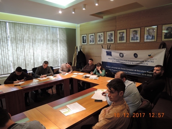 În data de 18 decembrie 2017, ora 1200, la sediul Facultății de Construcții și Instalații, sala 0.1R, Iași, Str. Prof.dr.doc. Dimitrie Mangeron, nr. 1, a avut loc workshop-ul nr. 2 „Tehnologii eco-inovatoare pentru asigurarea eficienței energetice în domeniul construcțiilor".