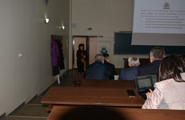 Doamna ing. Draghicescu Manuela având dubla calitate de Director al Centrului de transfer Tehnologic Petal cât și de Director al SC 3D ECAS ENERGY SRL, implicată direct in preluarea cercetărilor echipei de specialiști din cadrul proiectului EFECON, a prezentat avantajele și funcțiunile transferului tehnologic către parteneri industriali în domeniile de specializare inteligenta energie - mediu si biotehnologii.